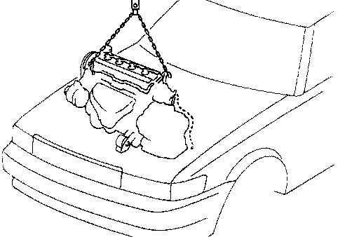 (f) Lift the engine out of the vehicle slowly and carefully. Clear the LH mounting while lowering the transaxle.