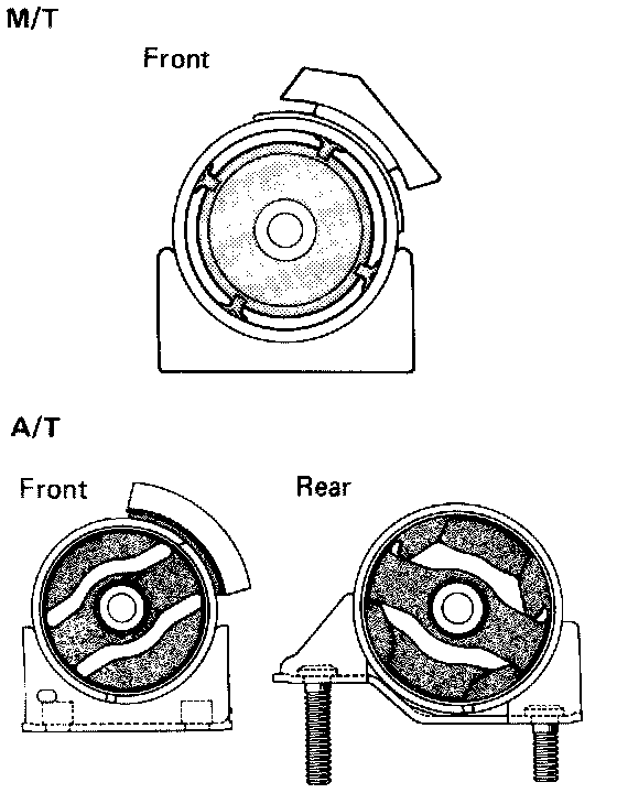 (d) Shake the engine several times to make sure that there is no load on the front and rear (All only) mounting insulators.