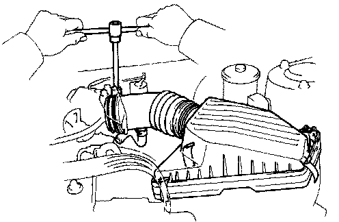 (e) Connect the air cleaner hose, and install the air cleaner cap with the four clips.