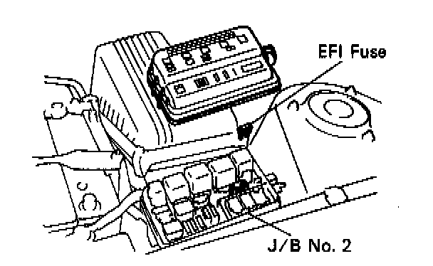 HOW TO CLEAR DIAGNOSTIC TROUBLE CODES WITHOUT A SCAN TOOL1. After repair of the trouble areas, the diagnostic trouble code retained in the ECM memory must be cleared out by removing the EFI fuse (15A) from J/B No.2 for 10 seconds or more, with the ignition switch OFF.
