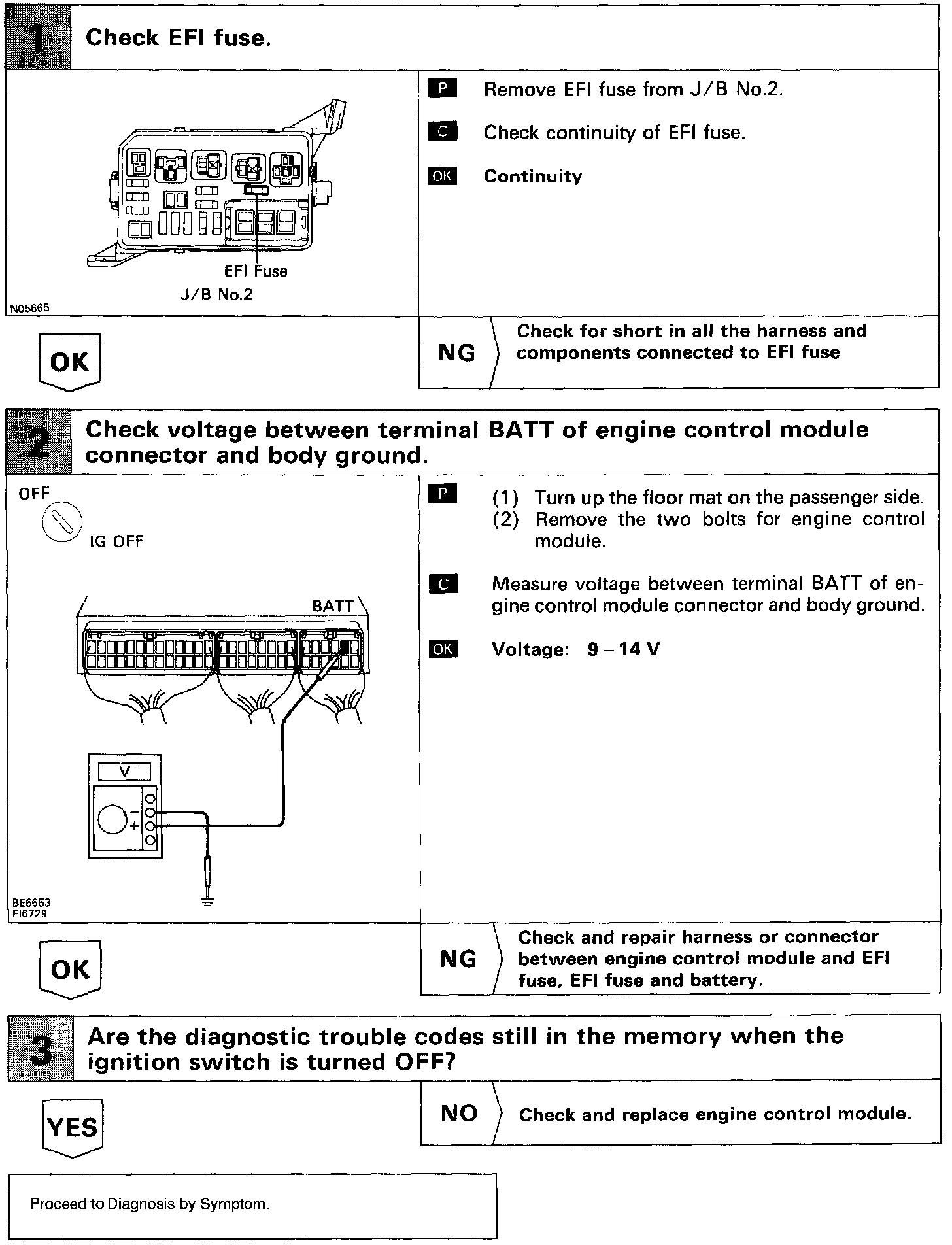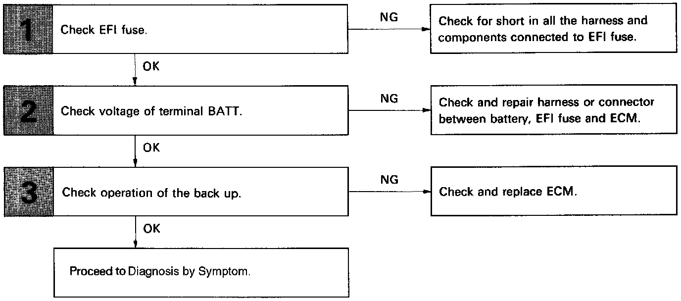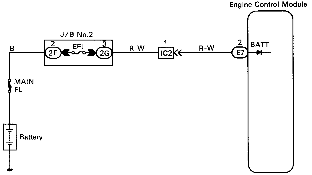 Battery positive voltage is supplied to terminal BATT of the ECM even when the ignition switch is off for use by the diagnostic trouble code memory and air-fuel ratio adaptive control value memory, etc.