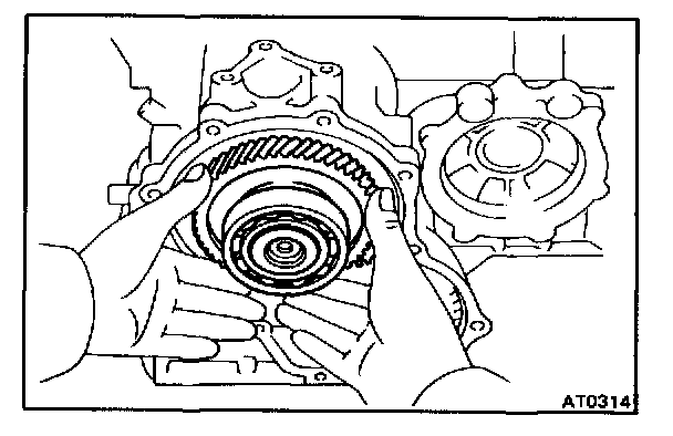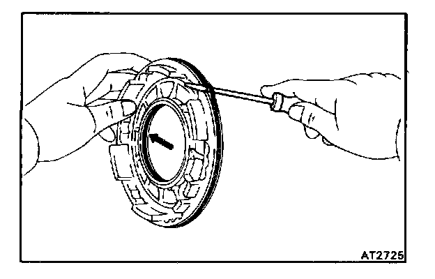 b. Tap on the circumference of the cover with a plastic hammer to remove the cover from the transaxle case.