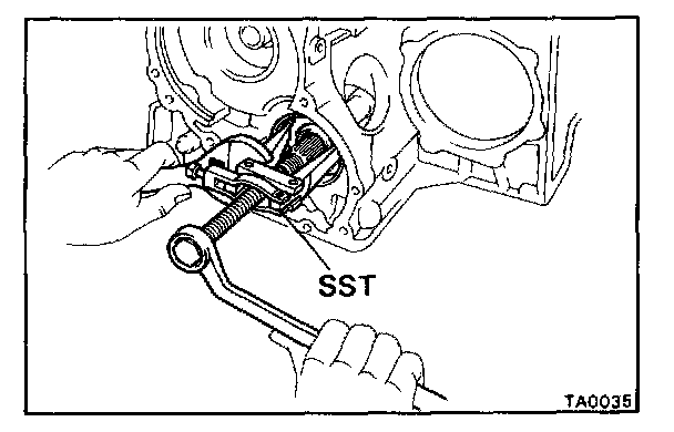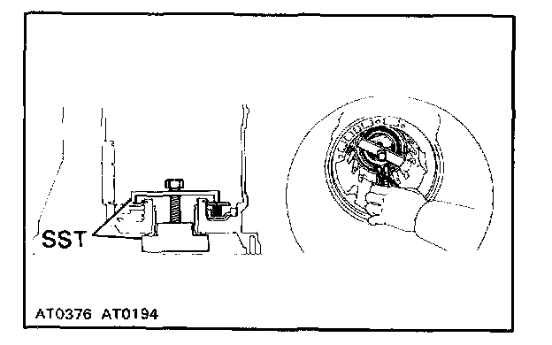 a. Place SST, and compress the return spring evenly by tightening the bolt gradually.