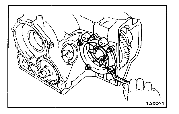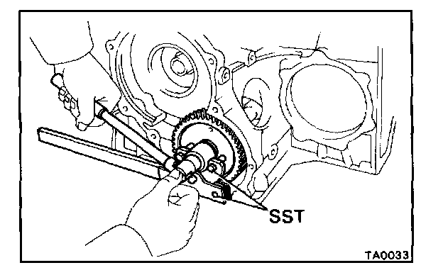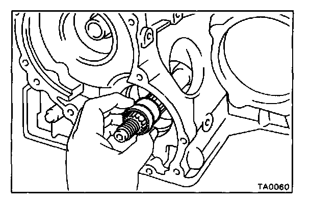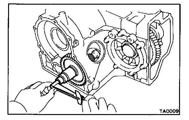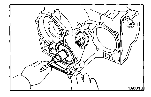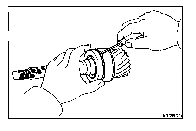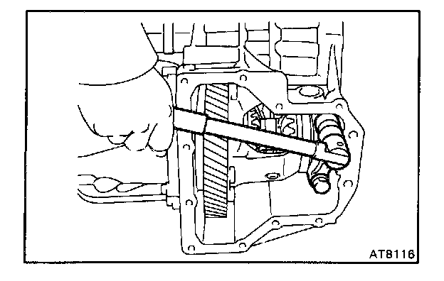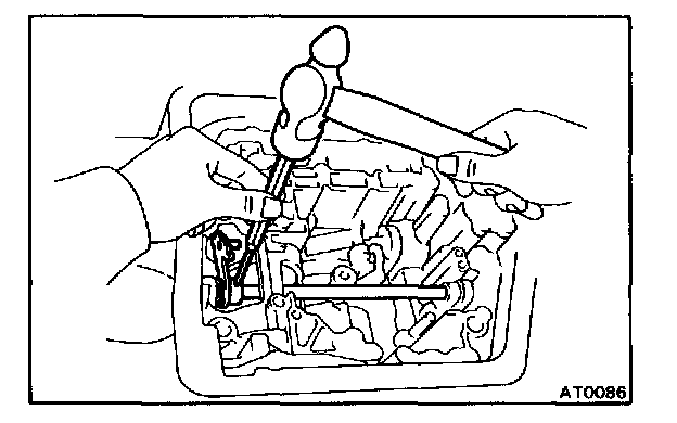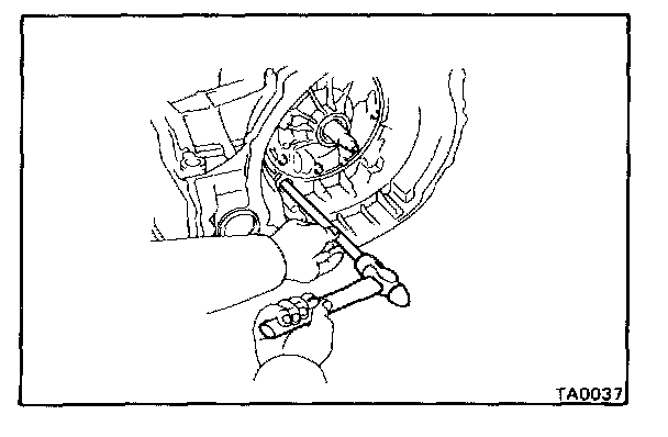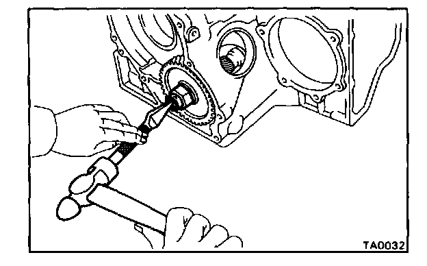b. Install the brass bar into the case hole to tap out the drive pinion.