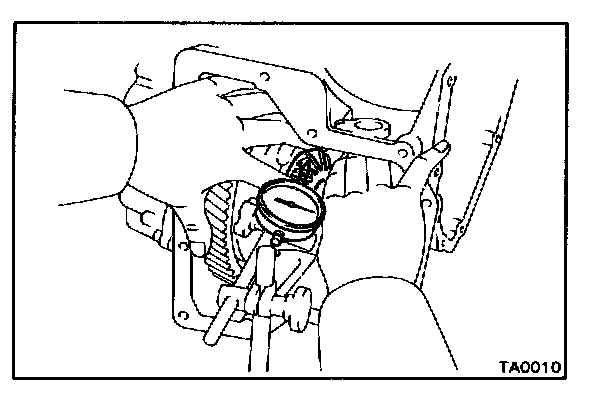 The total preload measured in step 2, minus the drive pin- ion preload, equals 0.1 - 0.2 N.m (1.5 - 2.0 kg.cm, 1.3 - 1.7 in.lb). If the result is not within this specification, the side bearing preload is wrong.