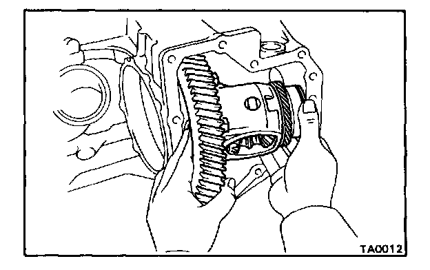b. Remove the differential case, outer race and adjusting shim from the case.