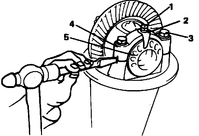 7. Punch matching marks on bearing caps and carrier to prevent intermixing left and right bearing caps.