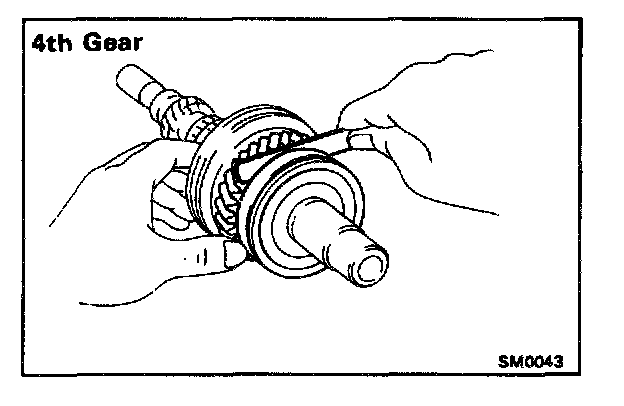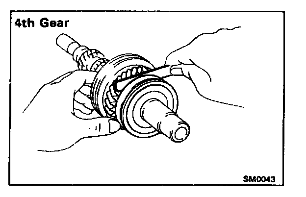 Using a feeler gauge, measure the 4th gear thrust clearance.