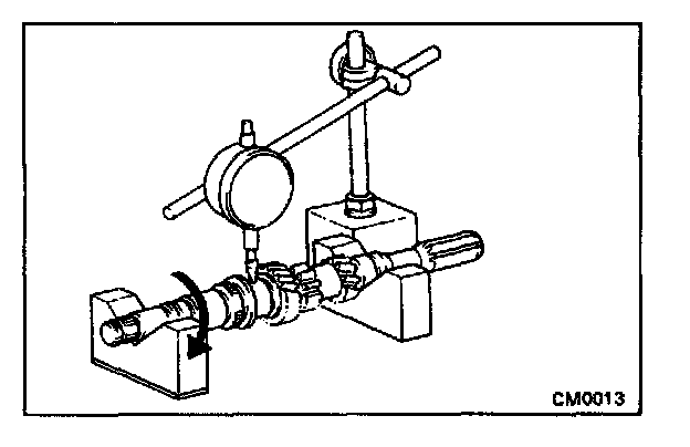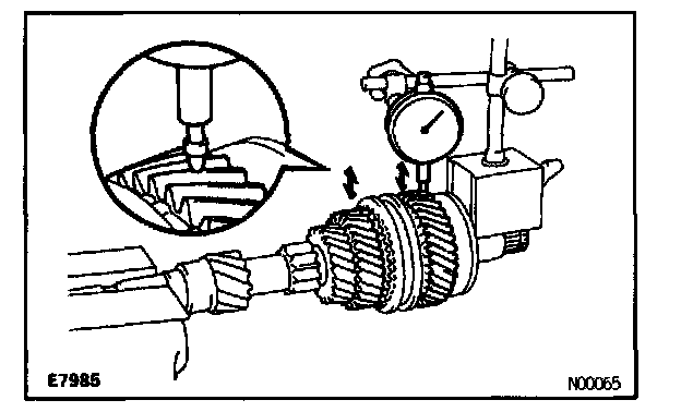 Using a dial indicator, measure the oil clearance between the gear and shaft.