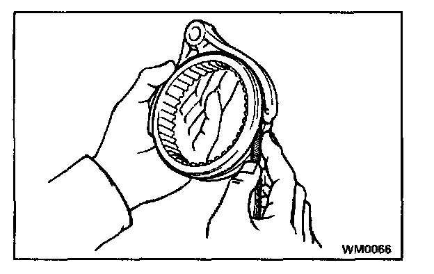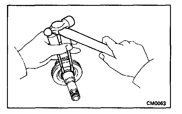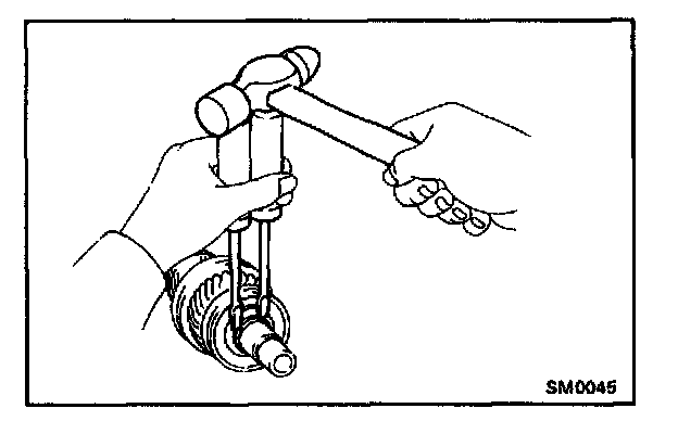 If braking effect is insufficient, apply a small amount of fine lapping compound between the synchronizer ring and gear cone. Lightly rub the synchronizer ring and gear cone together.