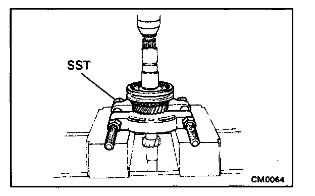Using SST and a press, remove the No.2 hub sleeve, 3rd gear, synchronizer ring and needle roller bearing.