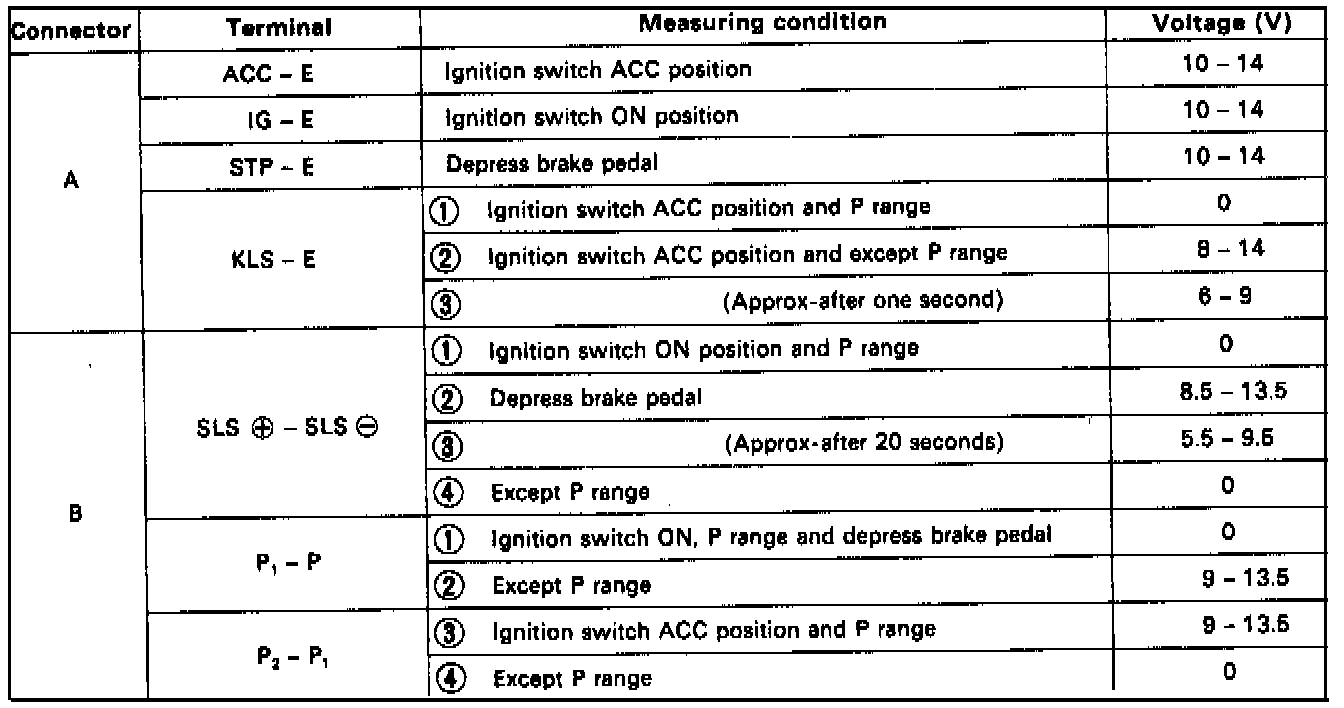 Shift Lock Control ECU Inspection