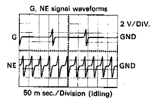- During cranking or idling, check between terminals G1 and G(-), NE(+) and NE(-) of engine control module.