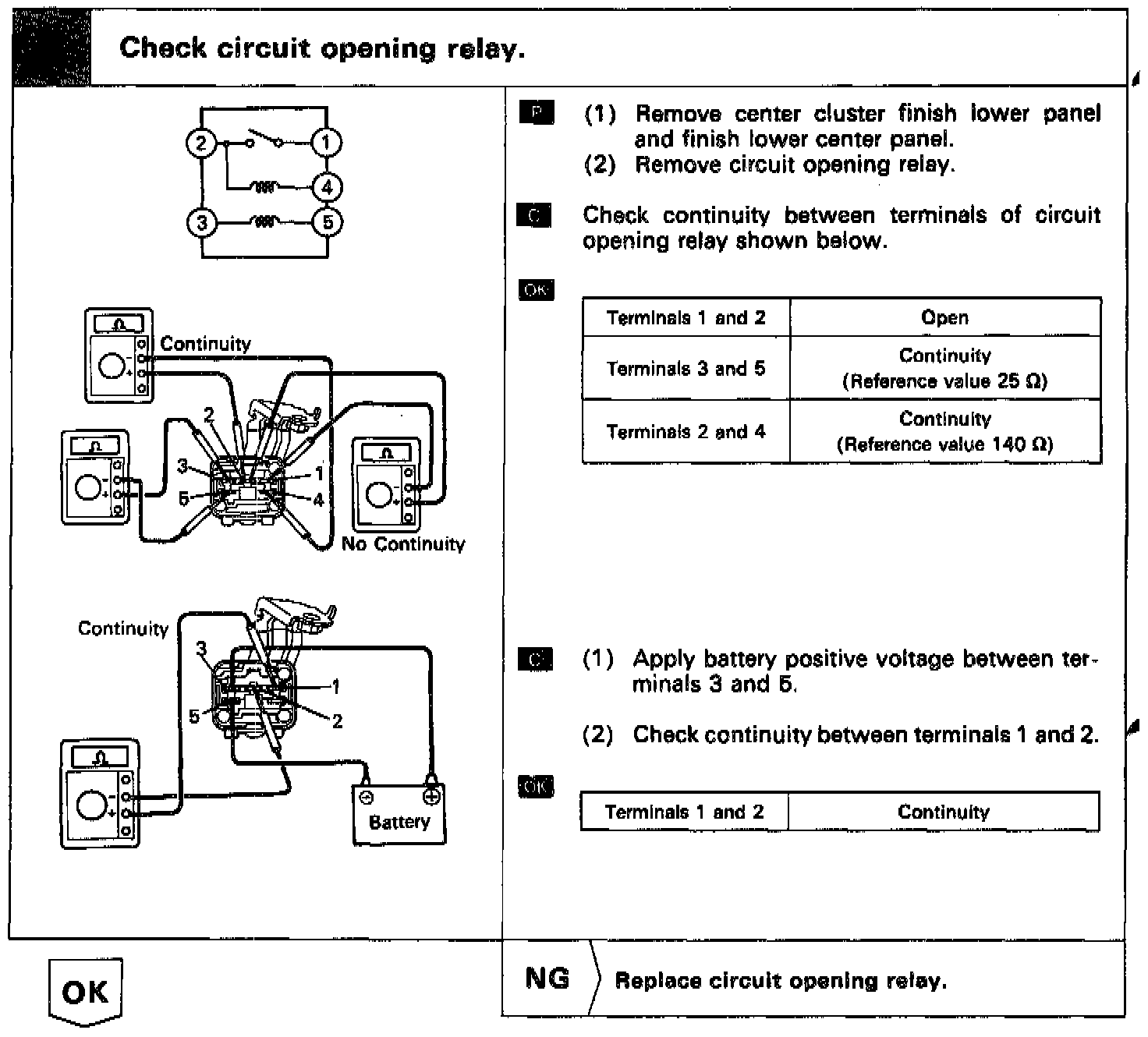 While the NE signal is generated (engine running), the ECM keeps Tr ON (circuit opening relay ON) and the fuel pump also keeps operating.
