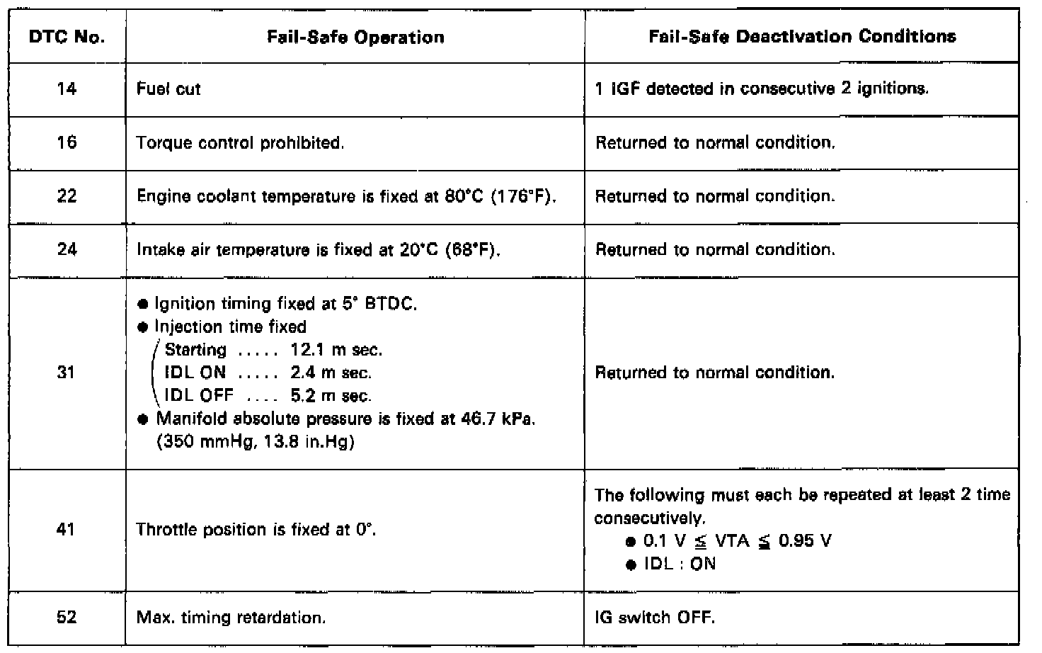 If any of the following codes is recorded, the ECM enters fail-safe mode.