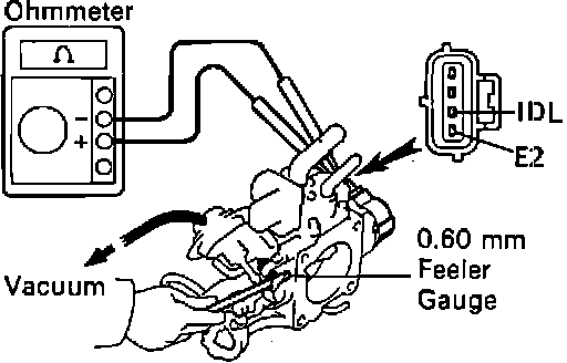 3. Connect ohmmeter across TPS terminals IDL and E2.