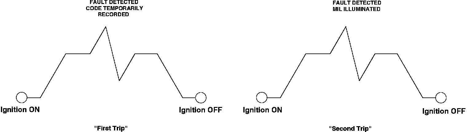 Certain DTC's (21, 25, 26 and 71), can be triggered by driving conditions without a malfunction present. To improve self diagnostic reliability, "2nd trip" detect logic is used.