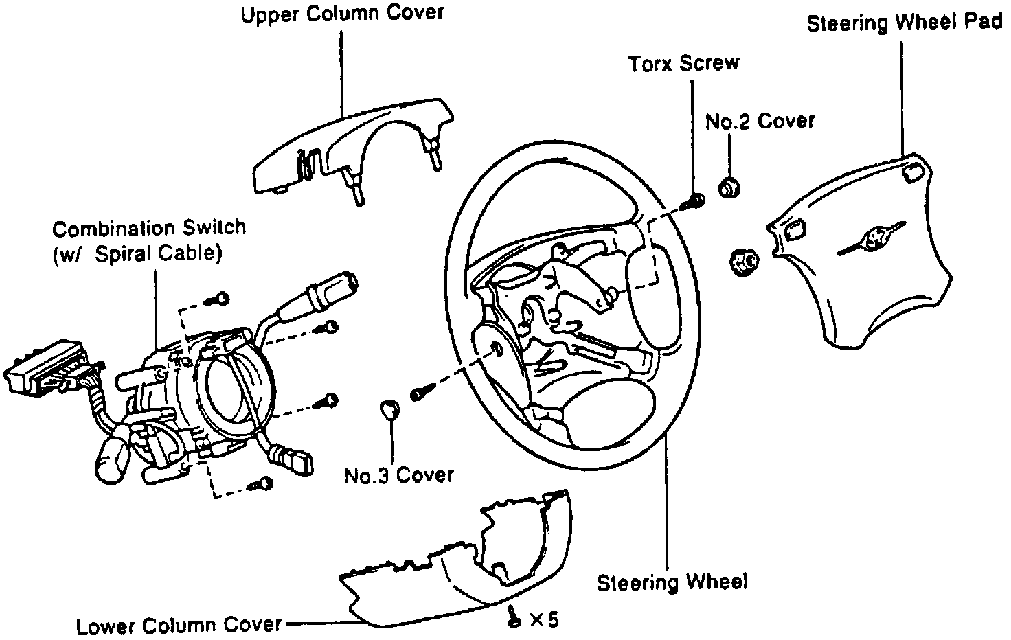 5. Pull steering pad rearward, then disconnect air bag electrical connector.