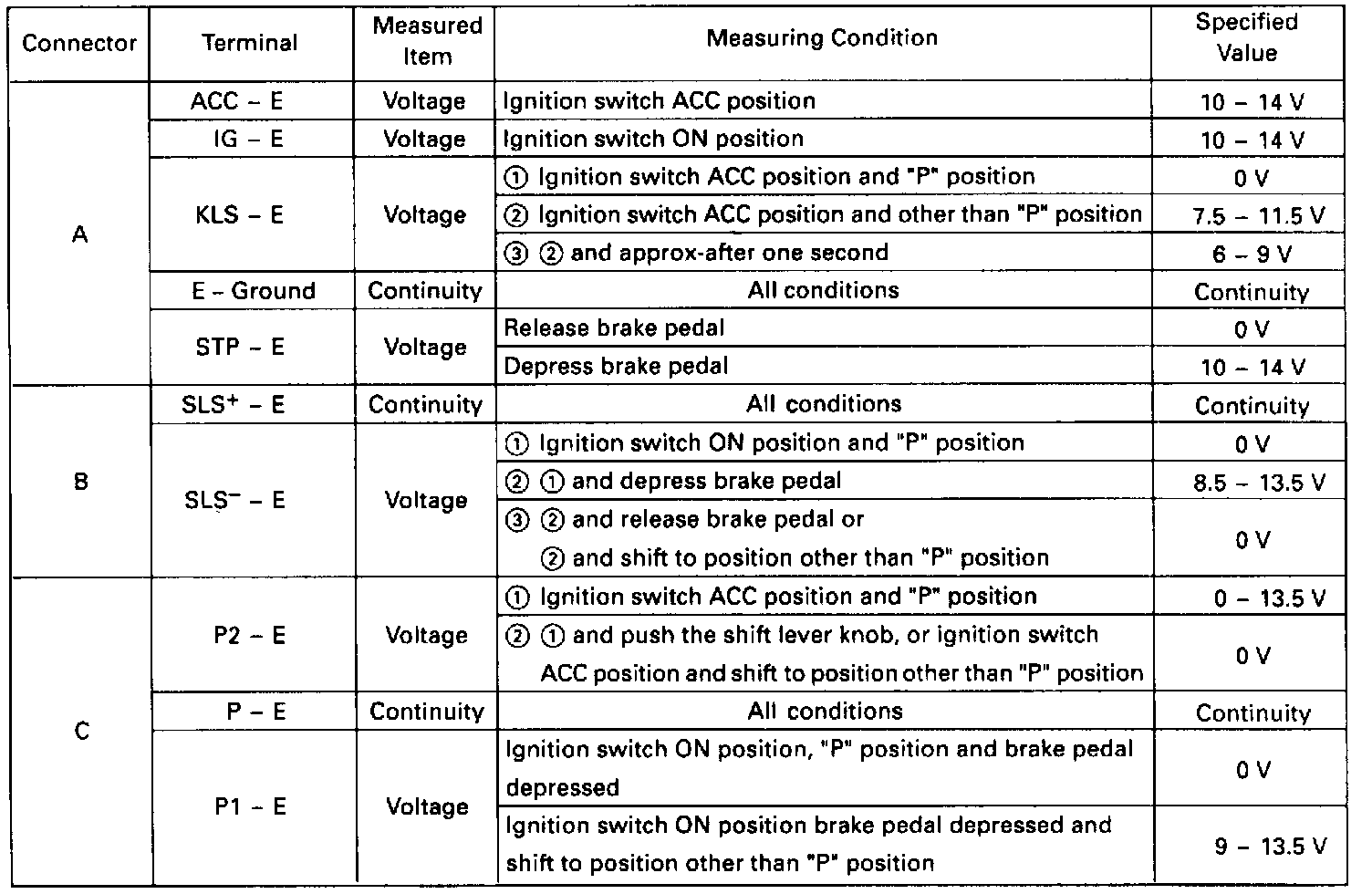 Fig. 12 Shift Lock ECU Connector Terminals.: