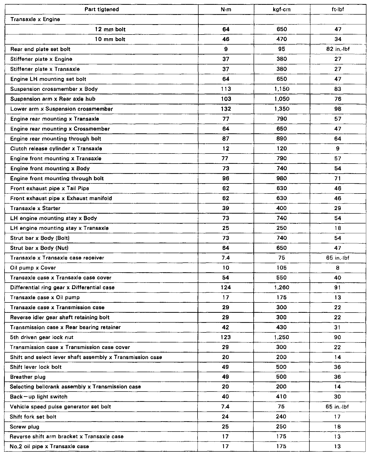 M/T Torque Data