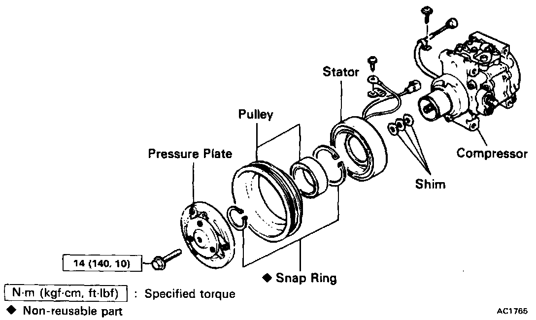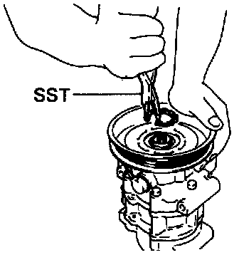 (a) Adjust the clearance between the pressure plate and rotor by putting shims on the compressor shaft.