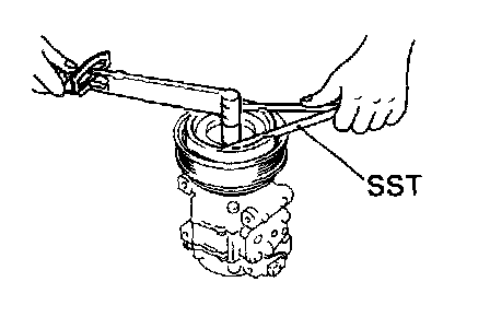 (b) Using SST, install the new snap ring. SST 07114-84020