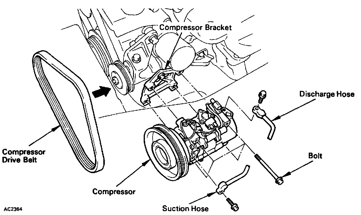 1. INSTALL COMPRESSOR WITH FOUR MOUNTING BOLTS