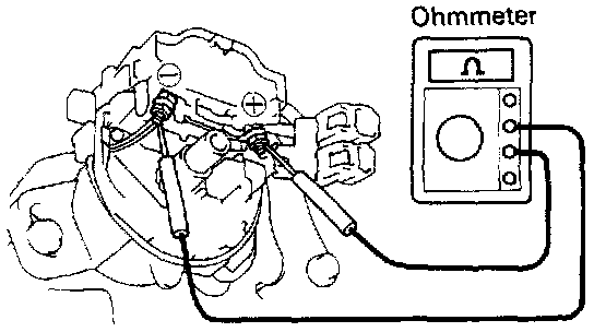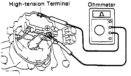 - Using an ohmmeter, measure the resistance between the positive (+) and high-tension terminals.