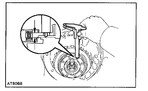 d. Check that the front end of the piston rod contacts the center of the second brake band depression.