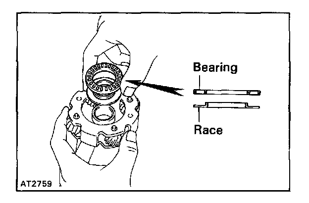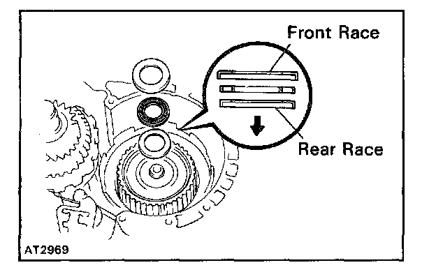 a. Coat the races and bearing with petroleum jelly, and install them onto the forward clutch drum.