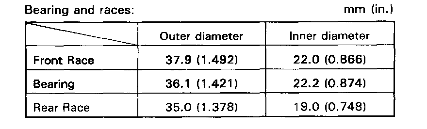Race: Outer diameter 43.0 mm (1.693 in.) Inner diameter 30.5 mm (1.201 in.)