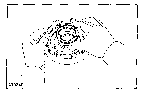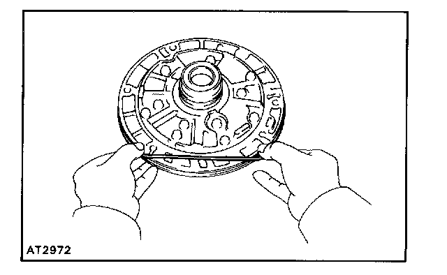 NOTE: Do not push on the oil pump strongly, or the oil seal ring will stick to the direct clutch drum.