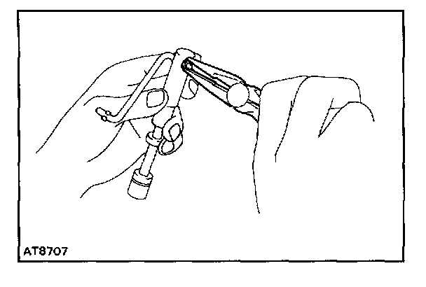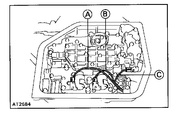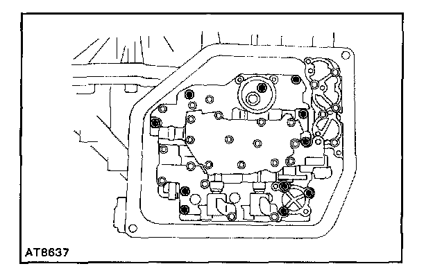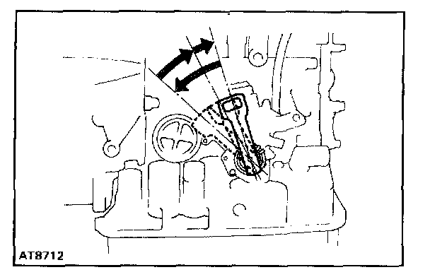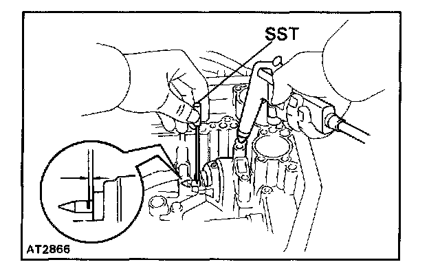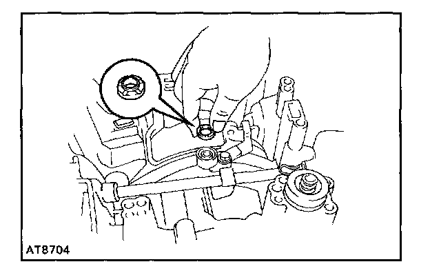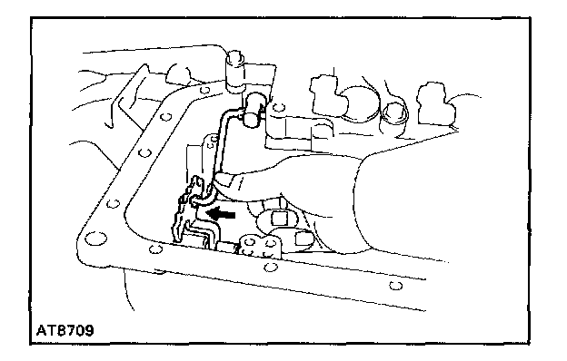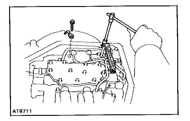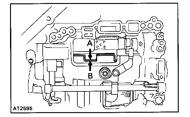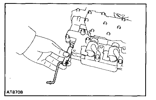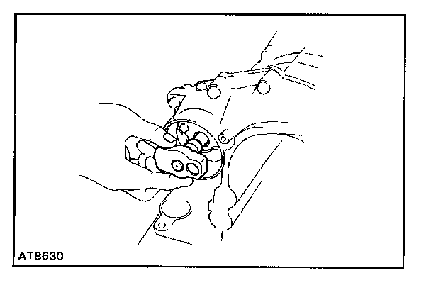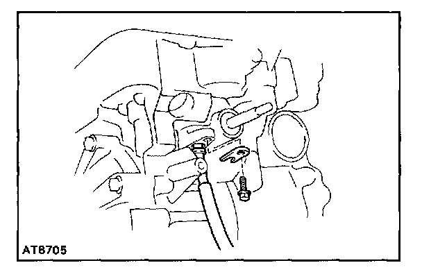 c. Check that the manual valve lever is in contact with the center of the roller at the tip of the detent spring.
