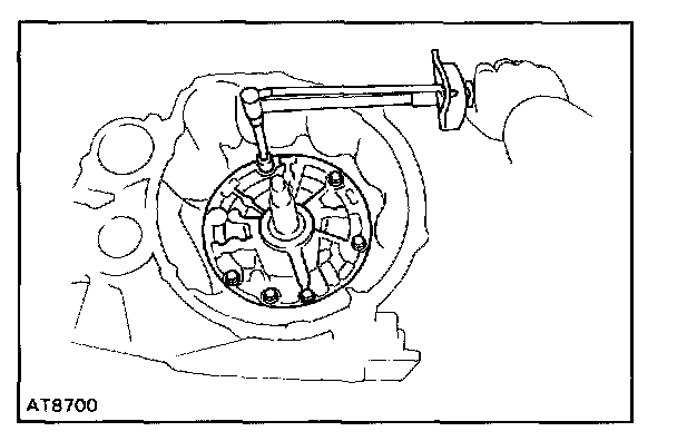c. Place the oil pump through the input shaft, and align the bolt holes of the pump body with the transmission case.