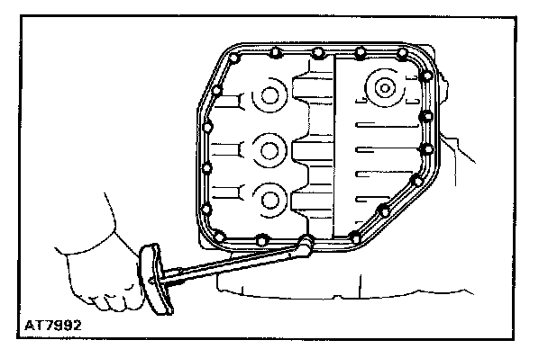 a. Install a new gasket to the oil pan and install them to the transmission.