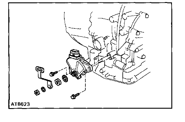 d. Install the sensor cover to the transmission and then install the sensor cover bracket with the two bolts.