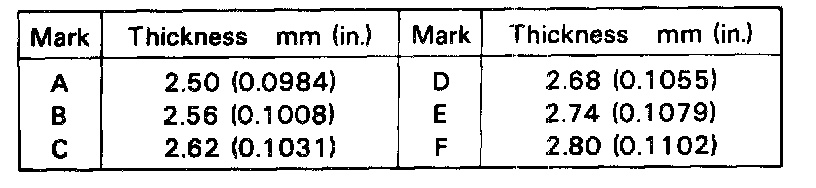 Standard clearance: 0.10 - 0.45 mm (0.0039 - 0.0177 in.)