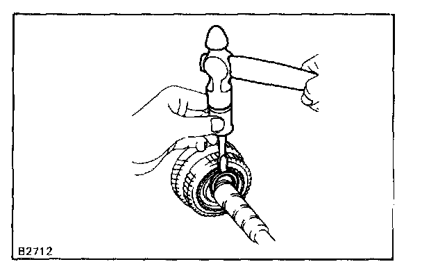 b. Using a screwdriver and hammer, tap in the snap ring.