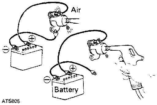 - Apply 490 kPa (5 kg/cm2, 71 psi) of compressed air, check that the solenoid valves do not leak the air.