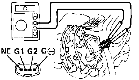 INSPECTION PROCEDURE FOR DTC 121. CHECK RESISTANCE OF EACH PICKUP COIL IN DISTRIBUTOR.