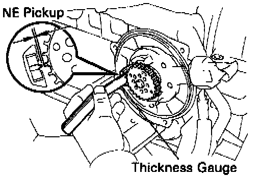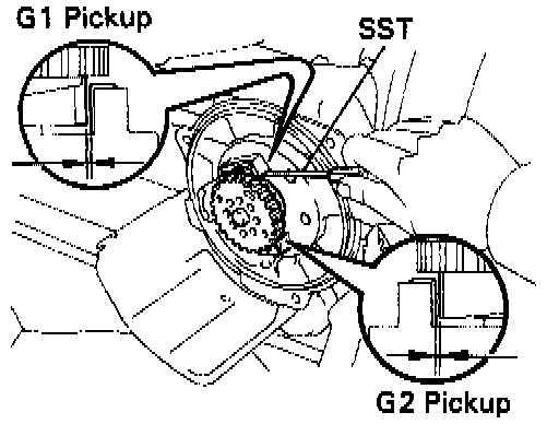 - Using the special service tool (SST# 09240-00020) for 'G1' and 'G2' pickups and a thickness gauge for the 'NE' pickup, measure the air gap between the signal rotor and pickup coil projection.
