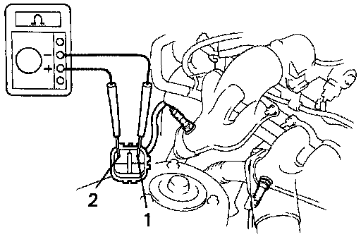 - Measure resistance between terminals 1 and 2 of main heated oxygen sensor connector.