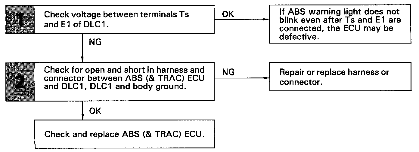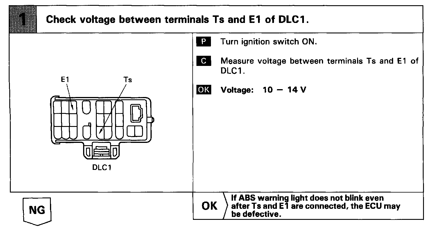 Connecting terminals Ts and E1 of the DLC1 in the engine compartment starts the check.