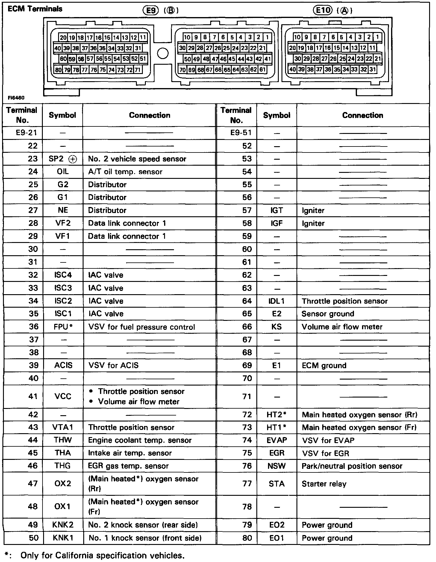 ECM Terminal ID - Connector E9, Terminals 21 ~ 80: