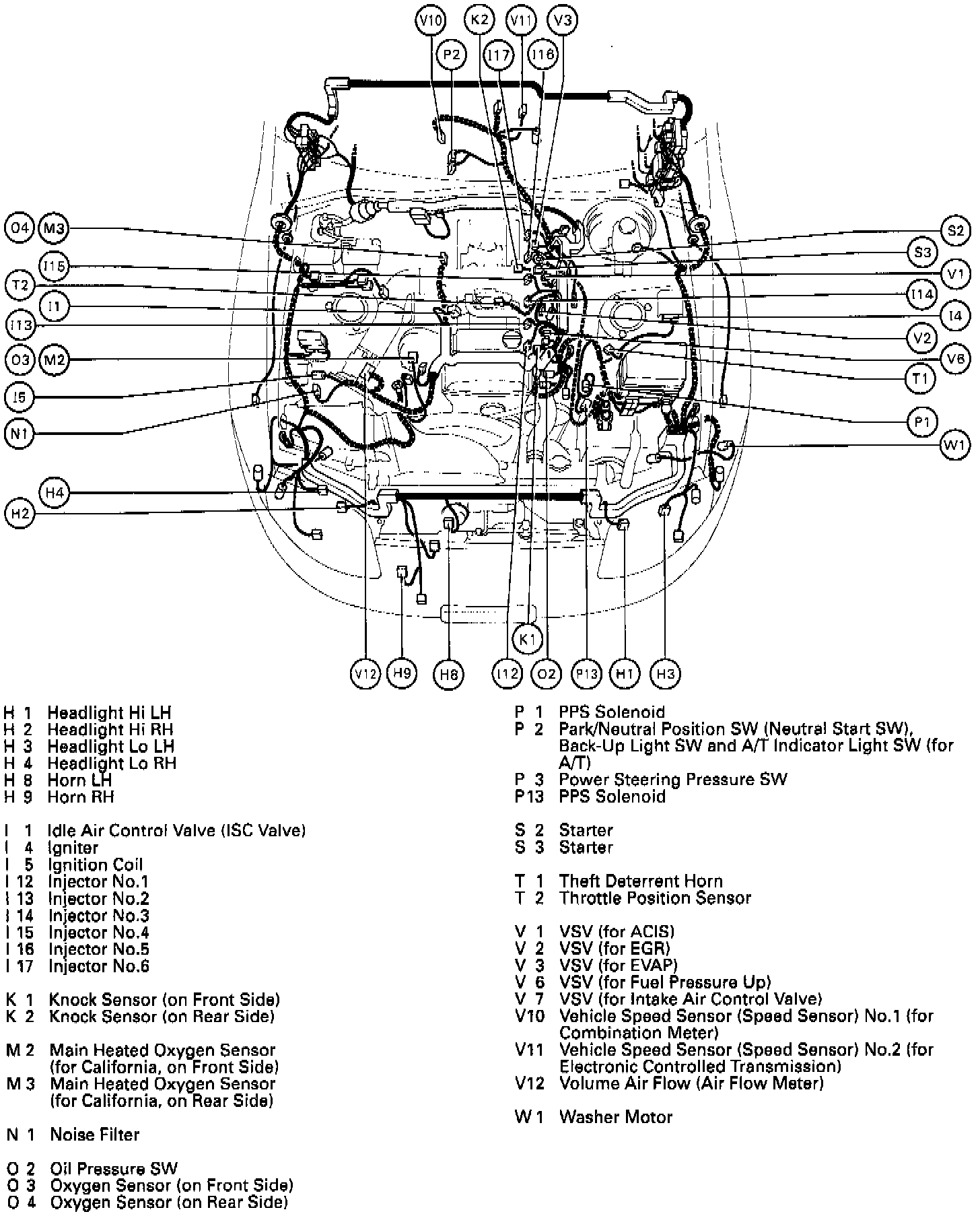 Engine Compartment Electrical Wiring Routing 2JZ-GE: