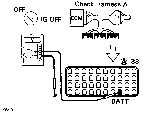 2. CHECK VOLTAGE BETWEEN TERMINAL "BATT" OF ECM CONNECTOR AND BODY GROUND.