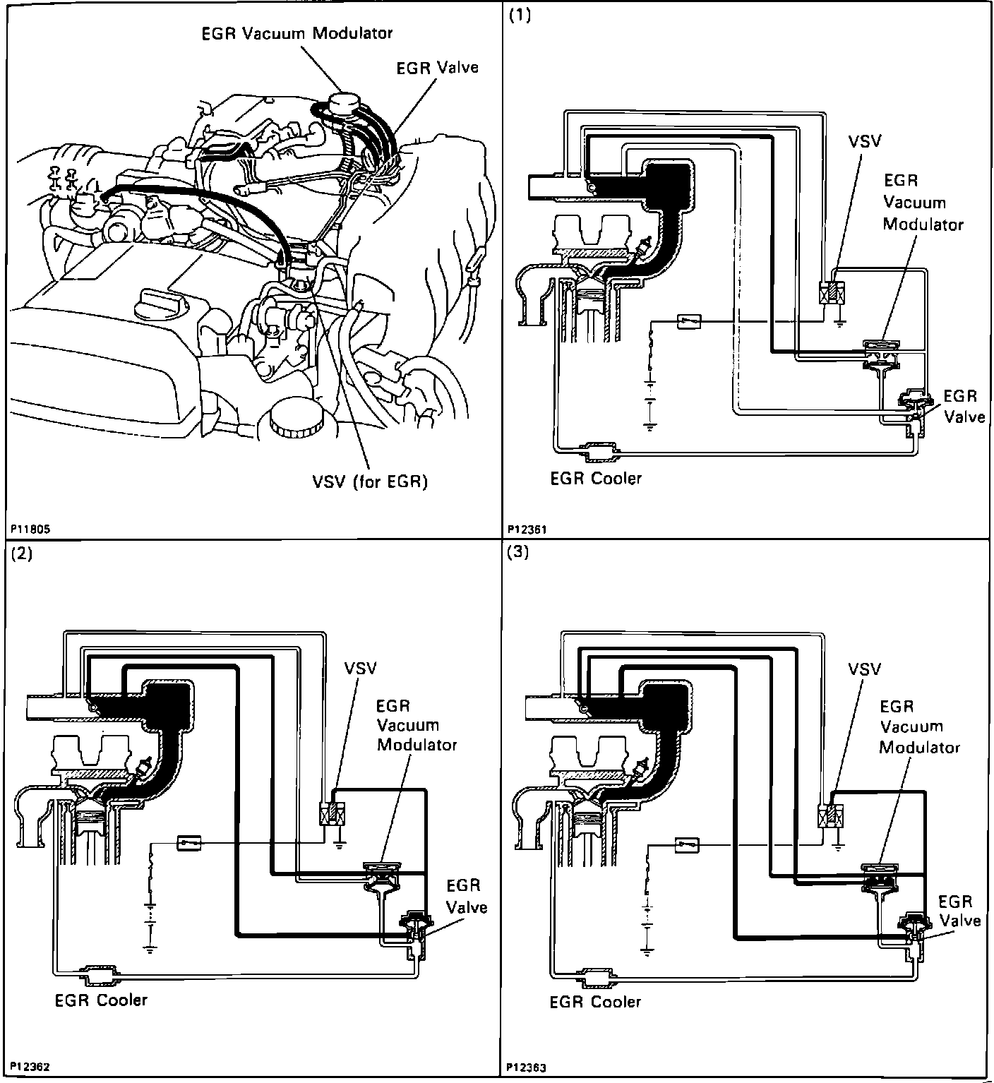 In addition to the modulator assembly, a vacuum switching valve (VSV) is used to vent EGR valve signal vacuum during times when exhaust gas dilution of the intake charge would adversely affect engine performance.