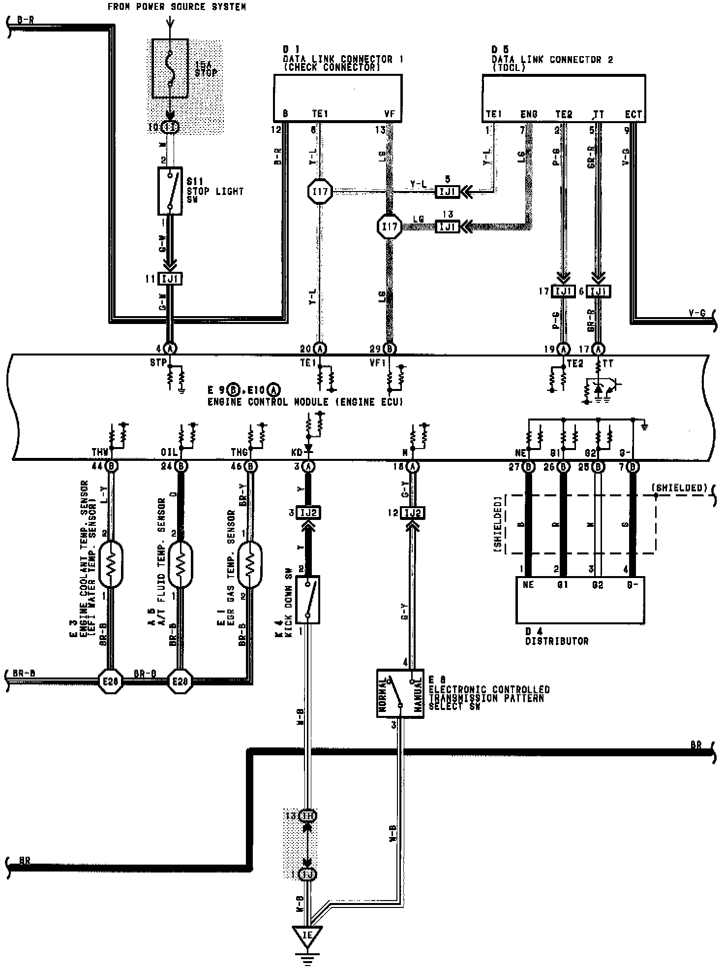 Electronic Controlled Transmission And A/T Indicator Wiring Diagram (2JZ-GE):