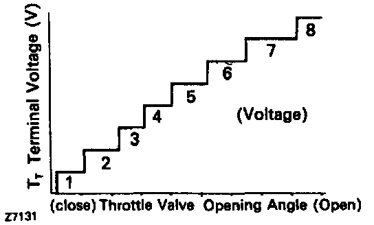 - Open the throttle valve fully to apply approx. 8.0 volts to terminal TT.