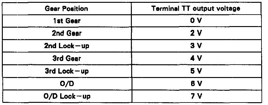 - If terminal TT output voltage check cannot be done, do the "TT Terminal Circuit" check under the Non-Trouble Code Charts.